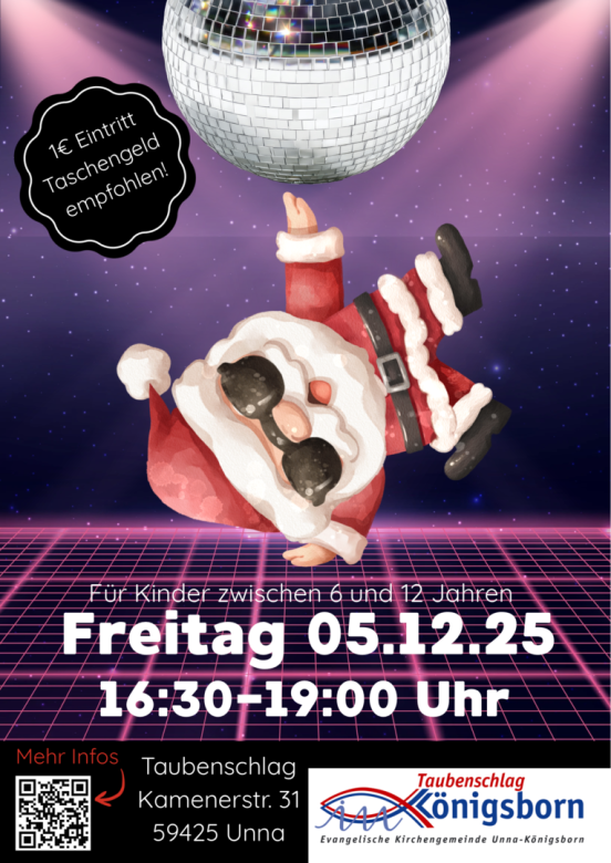 Am Freitag, den 05.12.2025 gibt es bei uns in der Kamener Str. 31 wieder coole Beats und lustige Spiele am laufenden Band für Kinder zwischen 6-12 Jahren.