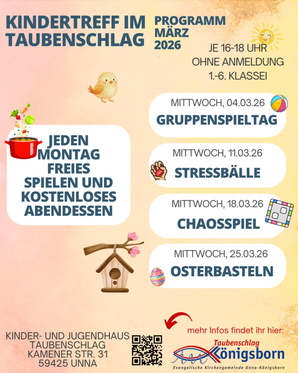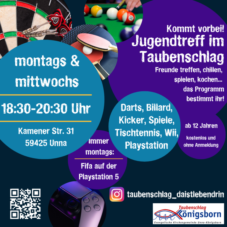 "Da ist Leben drin". Der Name unserer Homepage ist Programm: Bei uns ist immer was los! Informiere dich über die Angebote der Evangelischen Jugend Unna-Königsborn, darüber, wer wir sind und wo du uns findest. Auch auf Instagram "@taubenschlag_daistlebendrin" und auf Facebook "@taubenschlag" sind wir präsent.